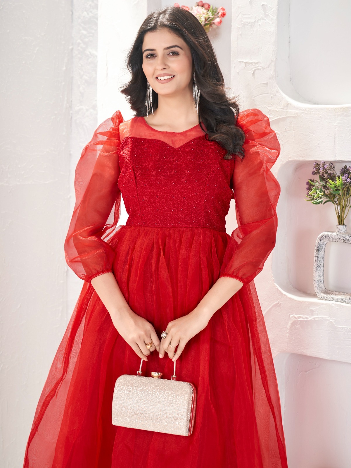 : Neck – Sweetheart shape with subtle thread work